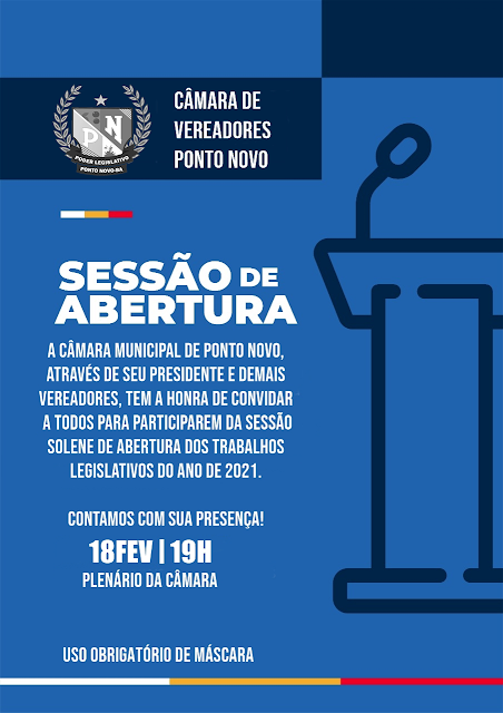Os trabalhos do legislativos da Câmara municipal de Ponto Novo terá início hoje(18), com uma sessão solene de abertura a partir das 19:00 hs.